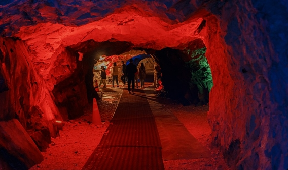 동굴 안은 계절에 관계없이 시원~해서 여름엔 더위를 피하기에 딱이고, 겨울에도 쾌적하게 관람할 수 있어요. 입장하자마자 눈에 띄는 건 형형색색 조명으로 꾸며진 터널. 마치 판타지 영화 속 한 장면에 들어온 느낌이에요. 안쪽으로 들어가면 활옥으로 만든 조형물, 전통 채굴 기계 전시, 체험 공간까지 정말 볼거리도 다양해요.