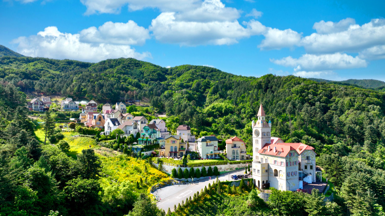 에델바이스 테마파크의 입구에 들어서자마자 느껴지는 건, 마치 스위스 마을을 그대로 옮겨 놓은 듯한 이국적인 풍경이에요.