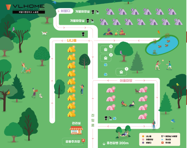 비발디 캠핑 파크 노일점은 강원도 홍천군 북방면 노일리 923-15에 위치해 있어요.