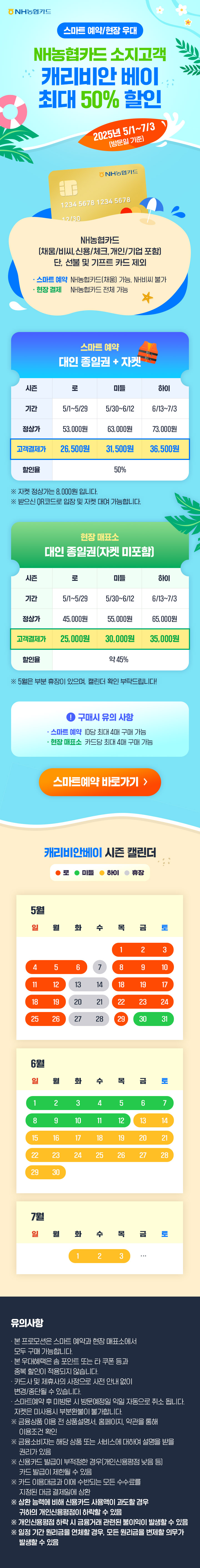 NH농협카드 캐리비안베이 최대 50% 할인 총정리