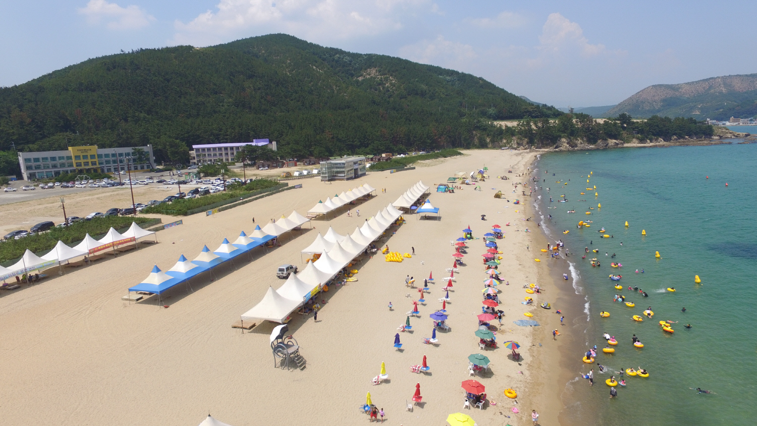 아이들과 함께 방문해도 좋은 점은 해수욕장 수심이 완만하고 안전요원이 상주한다는 것. 모래도 고와서 모래놀이, 물장구치기 모두 가능하며, 인근에는 소규모 놀이터와 산책 쉼터도 마련돼 있습니다.