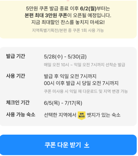 3. 희망하는 사이트에서 "숙박할인권 받기 클릭"