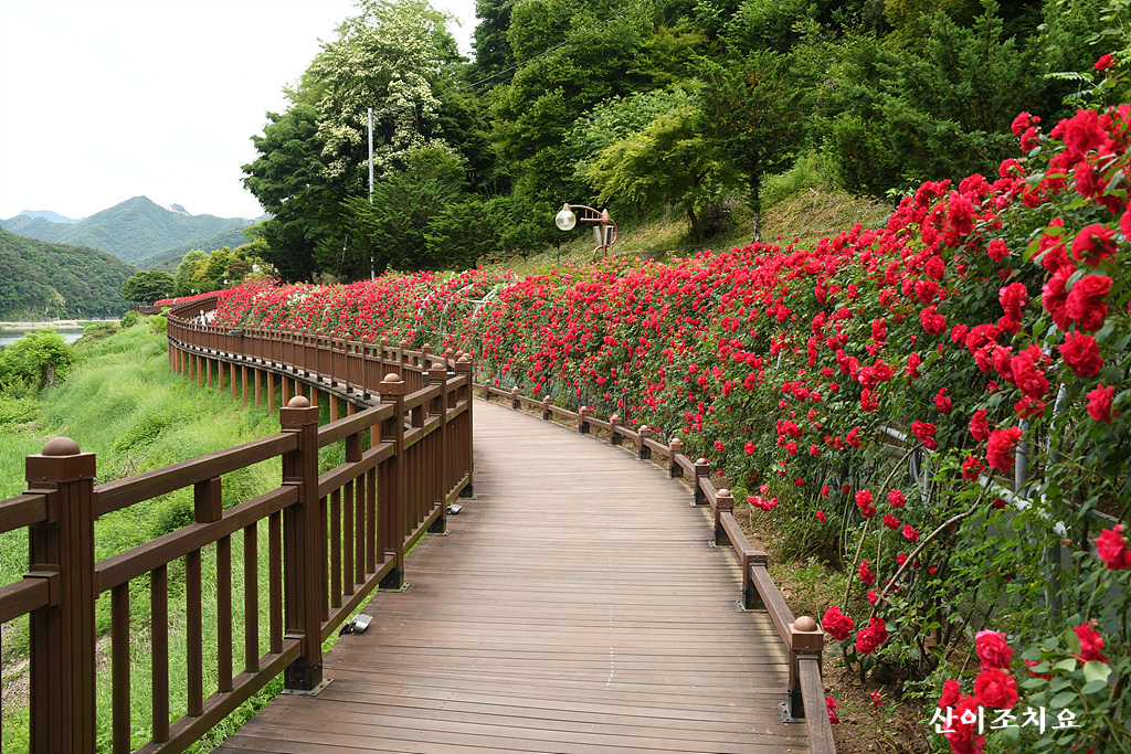 단양고등학교에서 상진리 강변까지 약 1.2km에 이르는 장미꽃 터널,